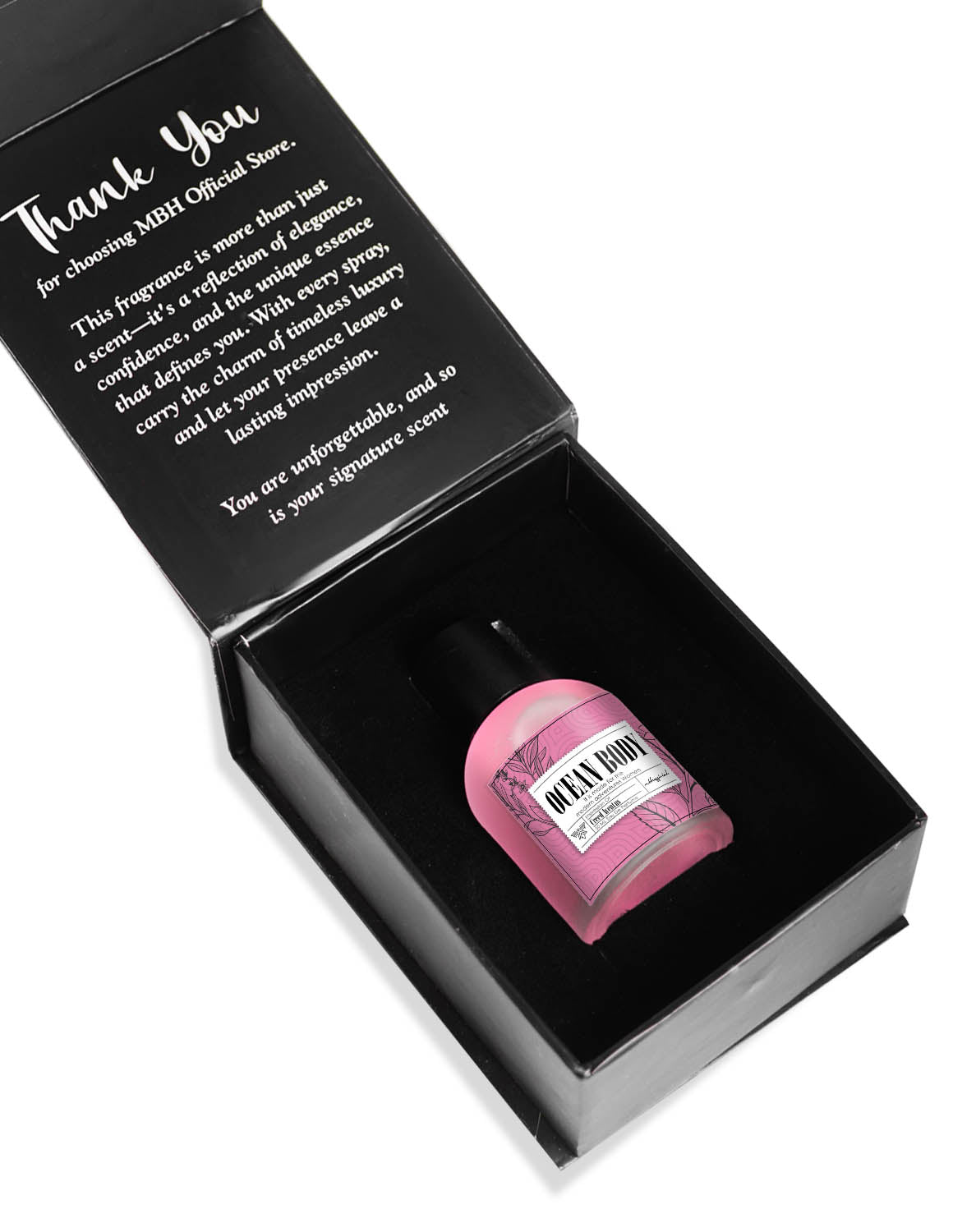 Ocean Body is a radiant and refreshing fragrance that embodies elegance, femininity, and grace. The top notes of Pomegranate, Yuzu, and Icy Accord create a bright, citrusy burst that awakens the senses with a crisp and uplifting opening. As the fragrance unfolds, the heart reveals a delicate floral bouquet of Peony, Magnolia, and Lotus Flower, adding a soft, romantic touch. The base notes of Amber, Musk, and Mahogany provide a warm and sensual finish, leaving a lasting impression of sophistication and allure.